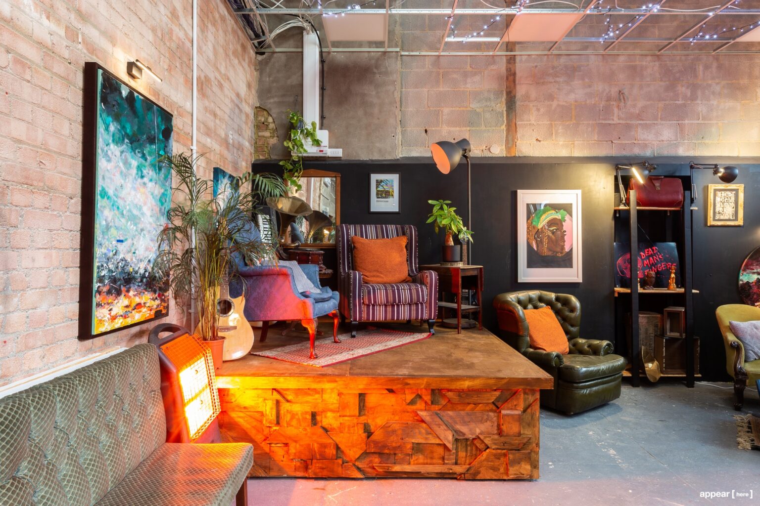 In stylish West Kensington, North End Road is best known for hosting one of the capital’s oldest markets. This quirky pop-up store with exposed brick walls and tasteful light decorations is just off the road on Beaumont Avenue. Kitted with a cocktail bar, coffee machine, outdoor space, and even a secret bookshelf door leading to another room, anything from music gigs to artists’ exhibitions would do well here.