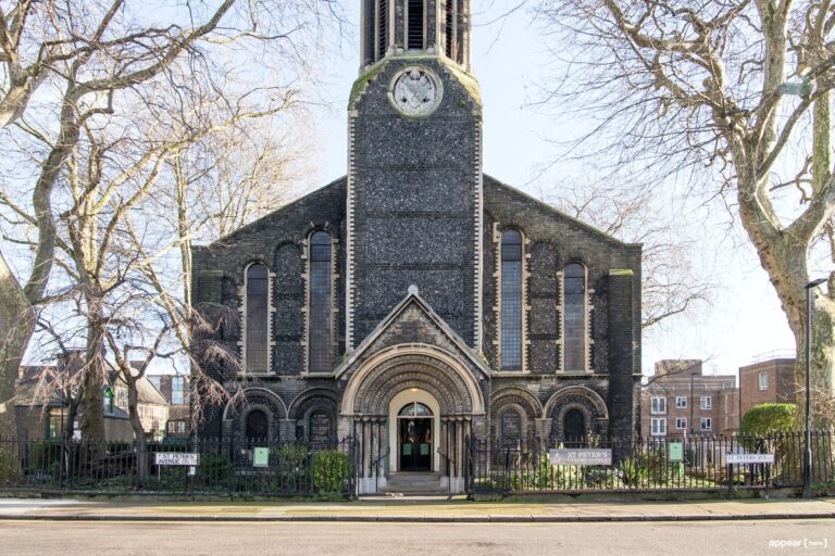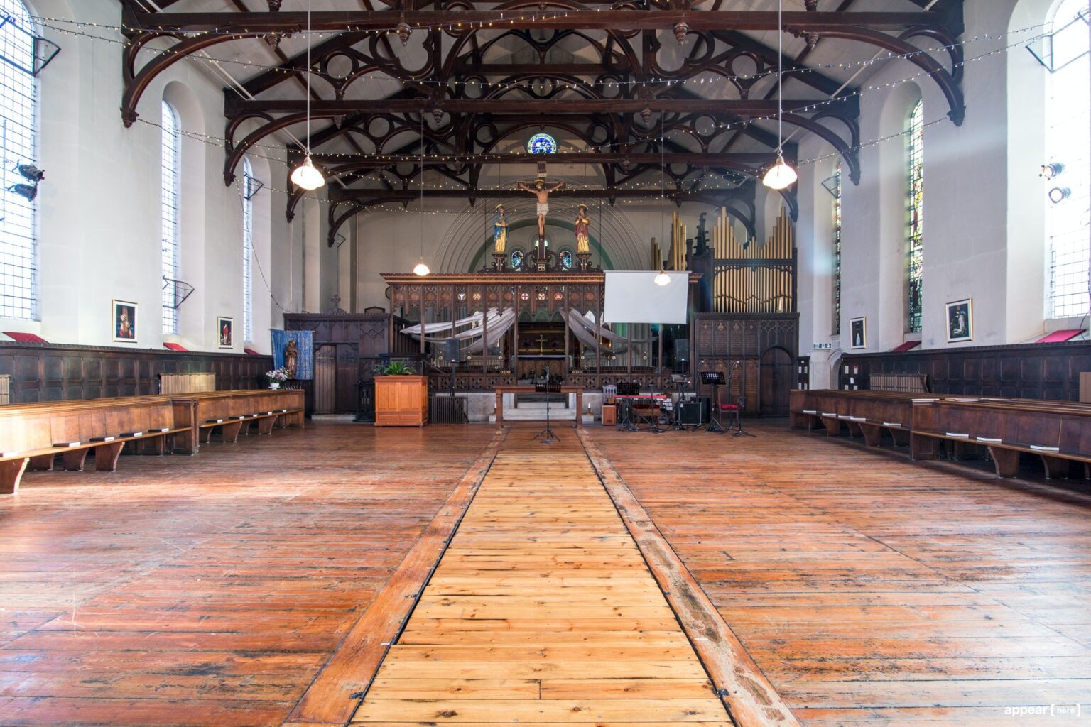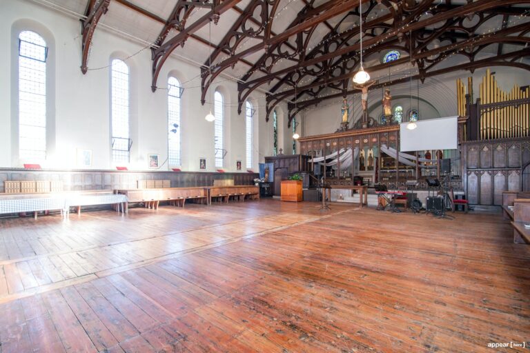 Round the corner from Hackney Road and Columbia Road is this beautiful 19th-century St. Peter’s Church. This Victorian church building – with two extra rooms, a kitchenette and a garden – is now open to rent for events. There’s space for 120 seated and 180 standing. View the floor plan for this space.