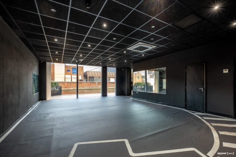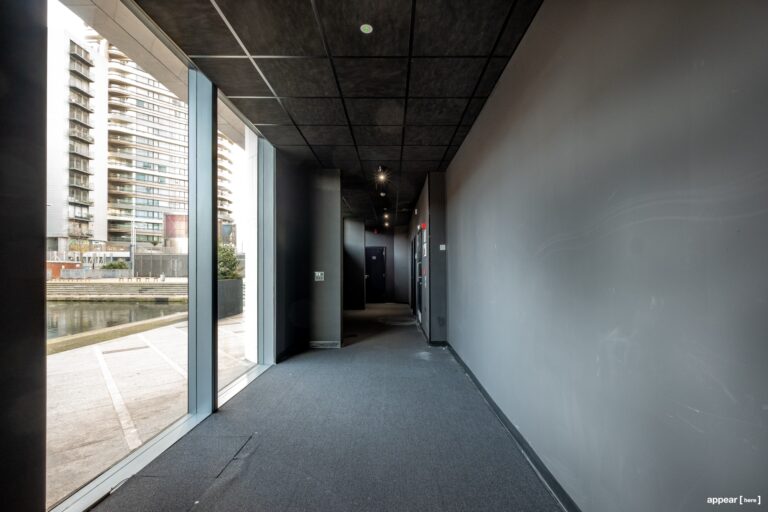 Part of a large apartment complex sitting right on the canal, this former gym makes use of the serene view with floor to ceiling windows. This residential area between Hoxton and Angel has welcomed a flurry of modern apartment buildings over the last decade, home to young professionals, well-to-do families and city commuters. With existing bathrooms and large open floor space, this space to rent would work well as a revitalised gym or wellness studio.