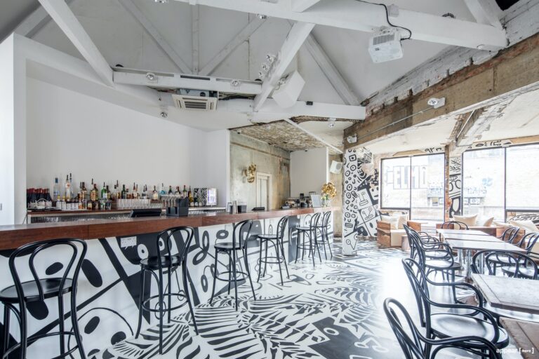 Below the arches of the railway line – where Old Street meets Shoreditch High Street – you’ll find some of East London’s busiest bars and shops. At one corner of this lively neighbourhood is this big space, facing into the action. The space is brand new and features two floors of co-working space and one bar area. The landlord is now looking to rent it out for event ideas: tables, desks, chairs and an internet connection are already in place and ready to go. Nearby you’ll notice Bar Kick, Prague bar and Cargo nightclub. Launch your event in an area that’s buzzing noon and night. Old Street Station is less than 10 minutes away and Liverpool Street and the City are also within walking distance.