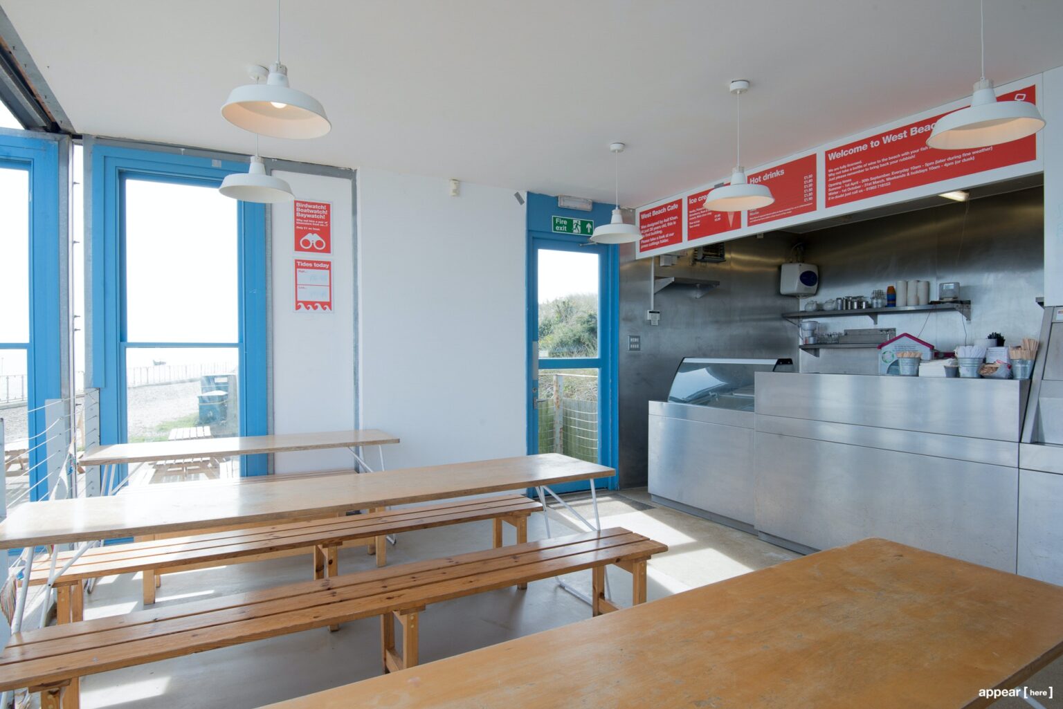 With a stunning panoramic view over the English Channel, this charming beachside cafe space on the edge of Littlehampton is undoubtedly one of the most beautiful locations in this popular seaside town. Formerly used as a cafe restaurant, the space is one small room with bench seating, a serving counter, and professional kitchen facilities behind. The front of the space is a wall of windows, which can be fully opened to create an indoor-outdoor atmosphere. There is additional outdoor seating space in front, as well as on a patio to the right. Situated on the mouth of the River Arun at West Beach, an area of Special Scientific Interest with rare wildlife and protected sand dunes, this charming space is a short walk from the Littlehampton Golf Club. Central Littlehampton and Littlehampton Train Station are around a mile away via a scenic walk along the river.